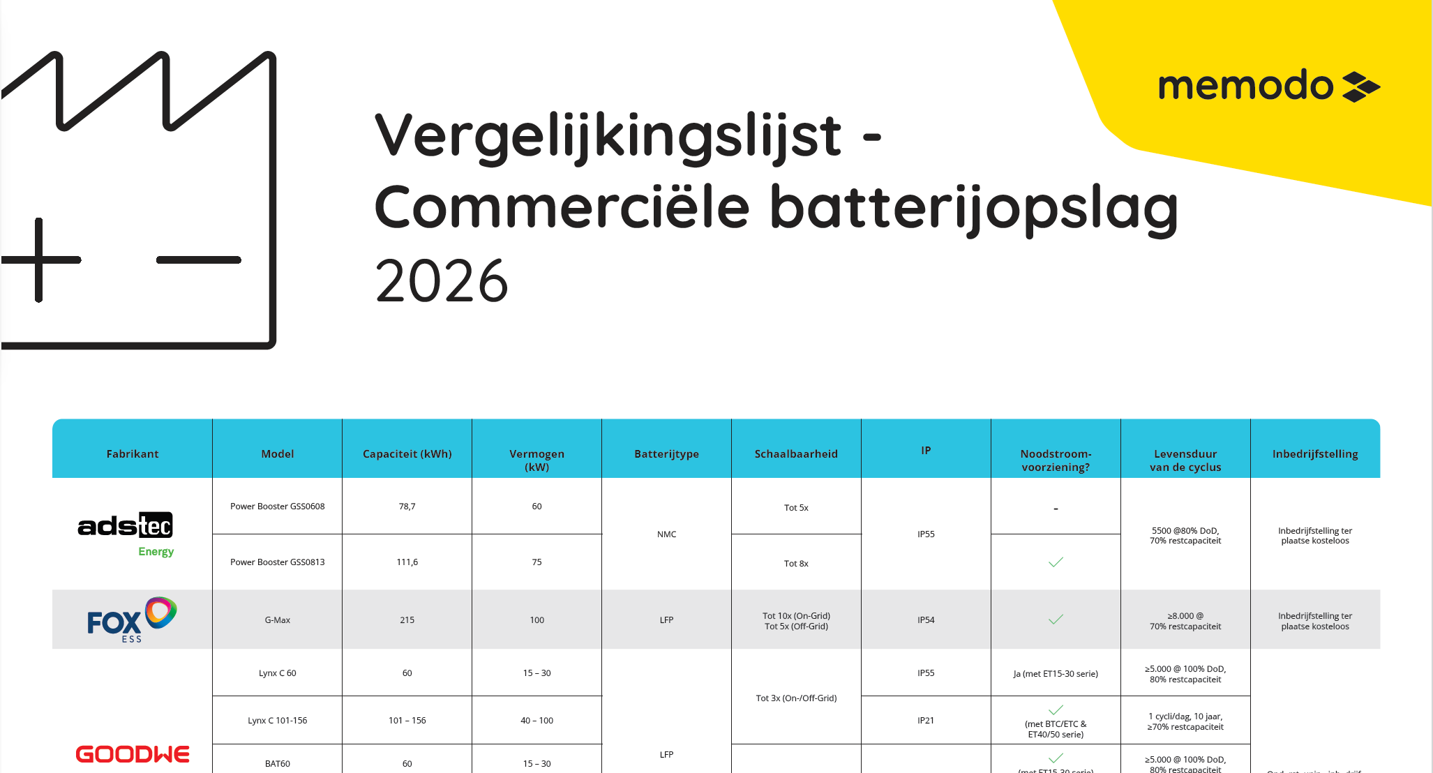 Downloads voor onze Memodo vergelijkingslijst voor commerciële opslagsystemen: