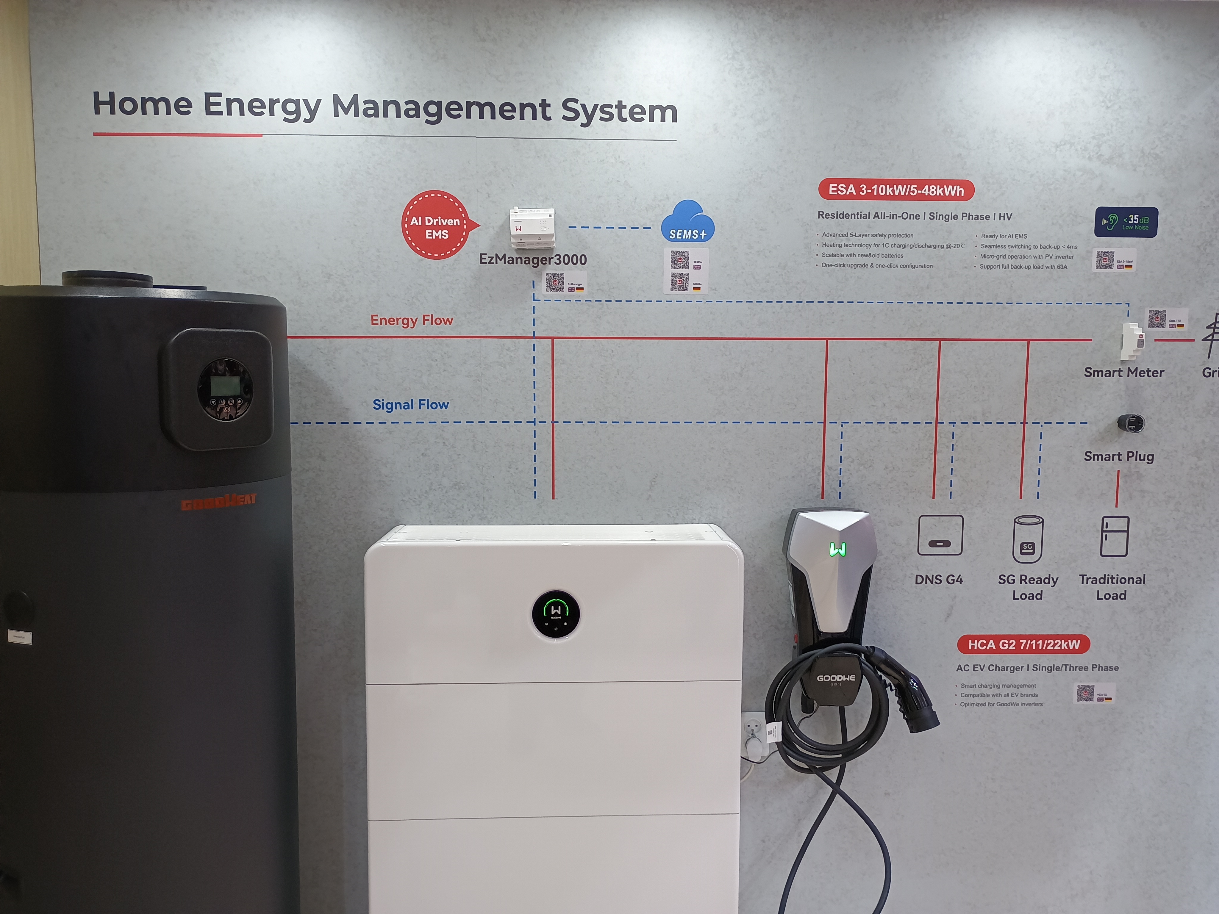 - GoodWe's eigen energiemanagementysteem: Vanaf het midden van het jaar zal het nieuwe residentiële EMS GoodWe EzManager 3000 de GoodWe-productwereld samenbrengen. Het AI-ondersteunde EMS combineert dynamische belastingdetectie en slimme regeling. Je kan het eenvoudig installeren via de DIN-rail.